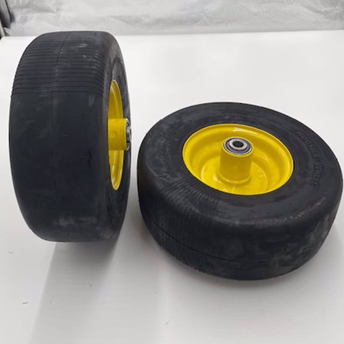 SET of 2 - 13x5.00-6 Flat Free Yellow Lawn Mower Wheel Assembly - 5/8 Inch Hub