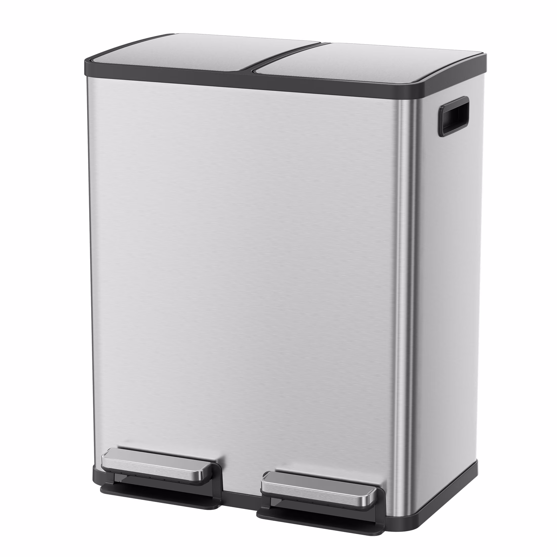 EDX 2 x 8.3 Gallon Dual Garbage Recycle Trash Can with Lid, Inner Buckets for Kitchen, Stainless Steel, Sliver